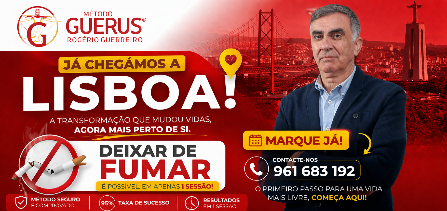 O Tratamento para Deixar de Fumar - Método Guerus é realizado exclusivamente por Rogério Guerreiro, criador do método em 2002, devidamente registado e com centenas de casos documentados que comprovam a sua eficácia.